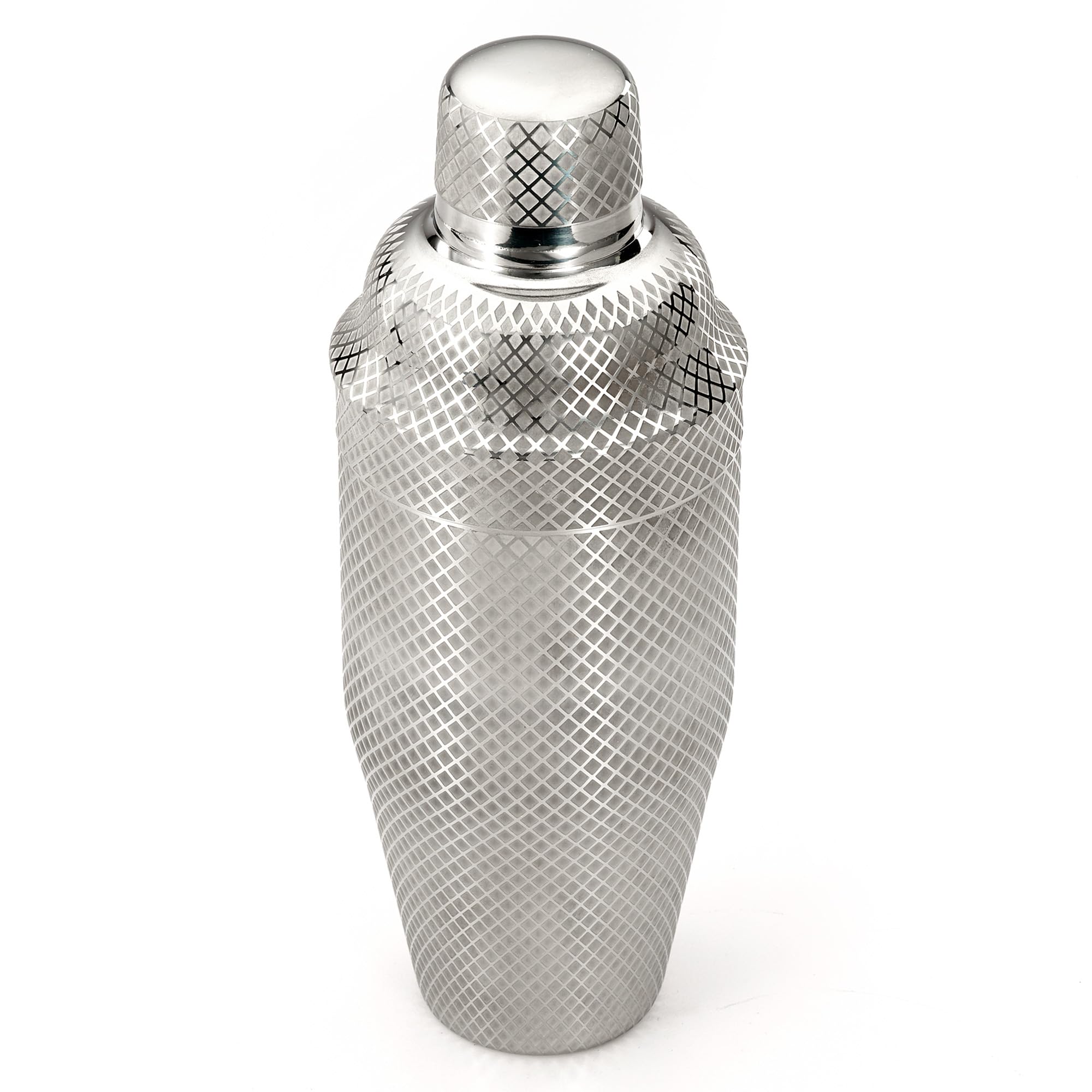 - INCLUDES: 24 oz stainless steel shaker with top and cap, all with elegant etched diamond lattice pattern