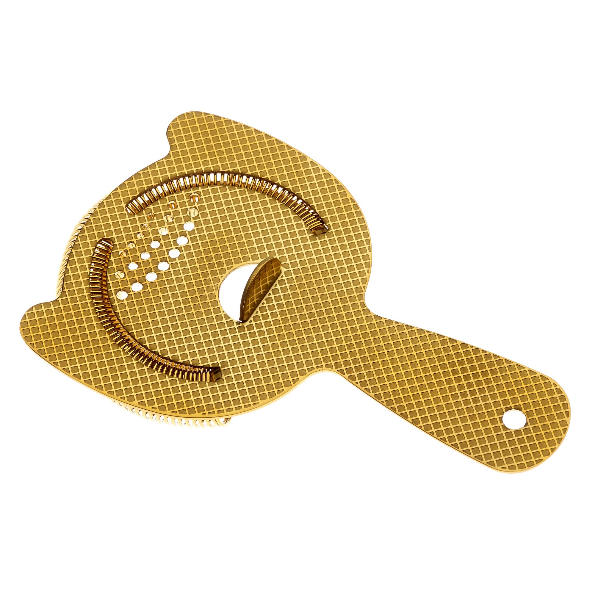 - INCLUDES: Gold plated, diamond lattice etched heavy duty spring strainer, made to effortlessly fit most shakers and mixing glasses